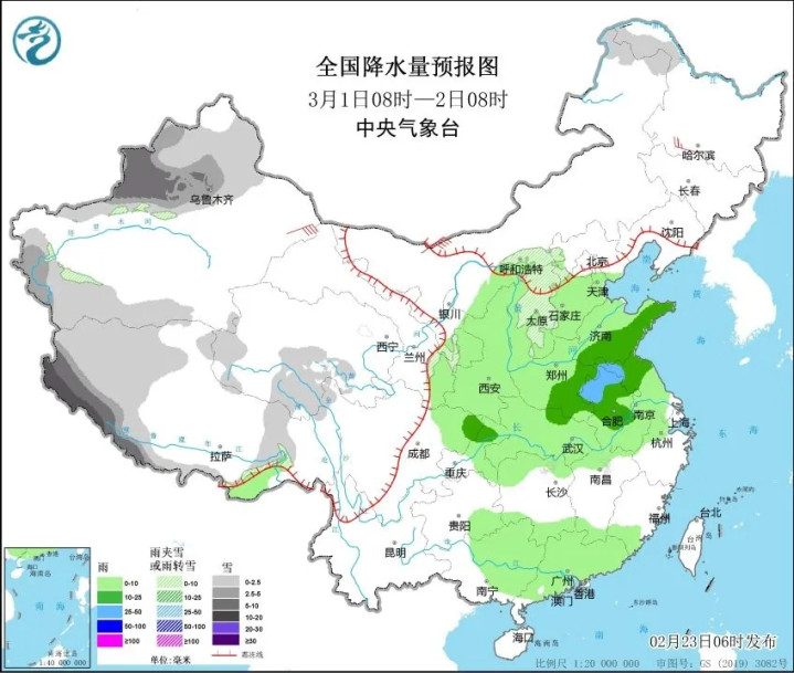 同时,在2月跨入3月的时候,我国气候中心也发布了预警,那就是大范围雨雪将“跨3月”。